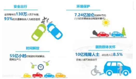 全球每年約130萬(wàn)人死于車禍,93%的交通事故由人為疏忽所致。智能網(wǎng)聯(lián)和無(wú)人駕駛技術(shù),將規(guī)避人力駕駛危險(xiǎn)性,極大提升駕駛安全性上百萬(wàn)條生命將幸免于難。